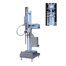 Model DG-400 Weighing quantitative filling machine can pour the liquid material into the vessels without cover (or with holes ) which are placed on the weighting platform according to the set quantity. It is easy for operator to place the vessel on the weighing platform with the opening aiming at the blanking spout and vessel positioned and locked. It is capable of automatic peeling. Blanking spout lowers automatically and it pours material through double speed. As soon as the material into vessels meets the seat quantity, it stops and then lifts automatically. The whole pouring procedure completes.